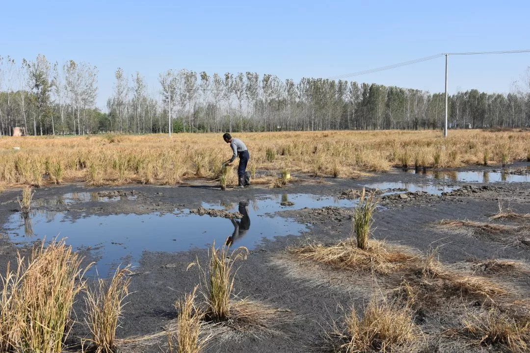 中農(nóng)海稻公司在曹縣的種植基地屬于次生鹽堿地,部分土壤的鹽度高達(dá)8‰。次生鹽堿地并不是天然存在的,而是由于人類活動所造成的土壤鹽漬化,普通農(nóng)作物不能在鹽堿化的土壤中生長。中農(nóng)海稻公司經(jīng)過十多年的研究選育,利用遺傳工程技術(shù),培育出可在鹽堿地依靠自然生長的海水稻。海水稻不僅能在鹽堿地依靠自然生長,還能改良土壤。試驗證明,中度鹽堿地連續(xù)種植海水稻3年后、重度鹽堿地連續(xù)種植海水稻5年后,土壤鹽堿可基本修復(fù)。